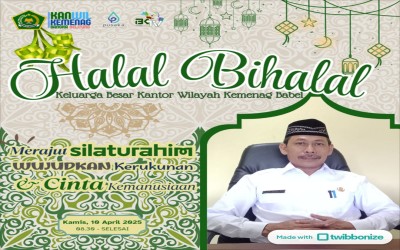 Merajut Silahturahim Wujudkan Kerukunan dan CInta Kemanusiaan. Kamis, 10 April 2025 di Aula Mas'ud Hasan Qolay Kanwil Kementerian Agama Provinsi Kep. Bangka Belitung.